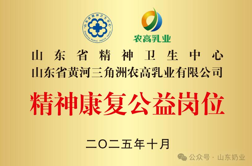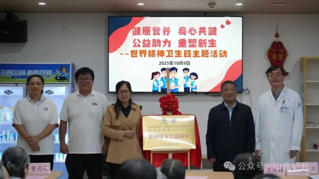 在第34个“世界精神卫生日”来临之际,山东省奶业协会积极发挥桥梁纽带作用,联合副会长单位山东省黄河三角洲农高乳业有限公司(以下简称“农高乳业”)与山东省精神卫生中心举办“健康营养 身心共健,公益助力 重塑新生”主题活动,并共同为“精神康复公益岗位”揭牌。此次活动是奶业与医疗领域跨界合作的一次创新实践,旨在通过公益岗位搭建、健康科普与营养支持,助力精神康复者重返社会、实现价值。